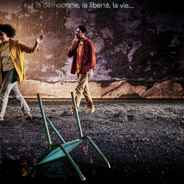Dans ce spectacle, Myriam Marzouki se saisit des émotions multiples et contradictoires engendrées par le processus exceptionnel qu’est le changement de régime politique dans une société. La double partition, textuelle et gestuelle, est aussi une partition rythmique réglée sur les différents temps du cours des événements qui font l’Histoire : l’effervescence révolutionnaire, la liesse et l’enthousiasme des débuts mais aussi la tentation du retour en arrière, le désarroi et la désillusion.