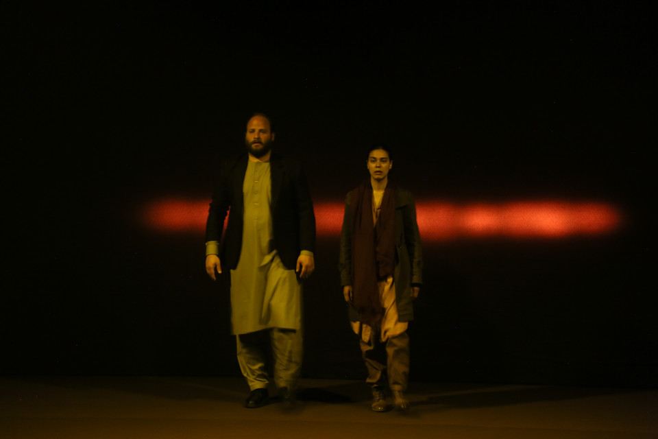Sa création La Valise vide, un texte de Kaveh Ayreek, est l’histoire du retour d’exil d’un jeune couple afghan, Maryam et Hamid, dont les parents avaient migré en Iran au début de la longue série des guerres afghanes dans les années 80. Les Afghans exilés en Iran n’ont pas accès aux études, au monde du travail, à la propriété́. Ils ne peuvent acheter ni maison, ni voiture, ni même un téléphone. Pour se déplacer d’une ville à l’autre, ils doivent obtenir une autorisation. Ils ne sont pas considérés comme des citoyens iraniens. Ils sont des citoyens de seconde zone.